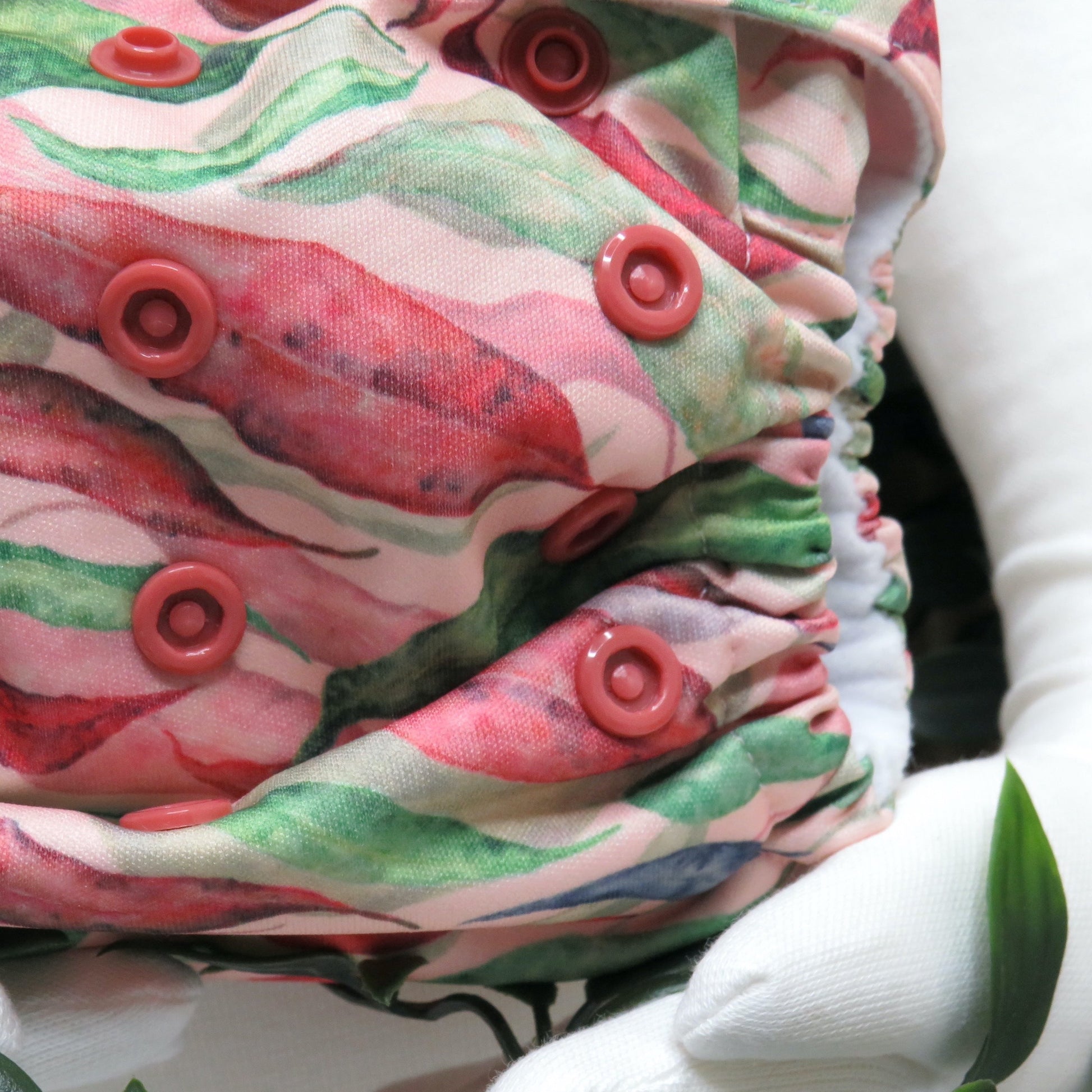 Our Double row front snapping cloth nappies are an All-In-Two style with 4 rise settings and are designed to fit from birth to toilet training (4-20kgs).