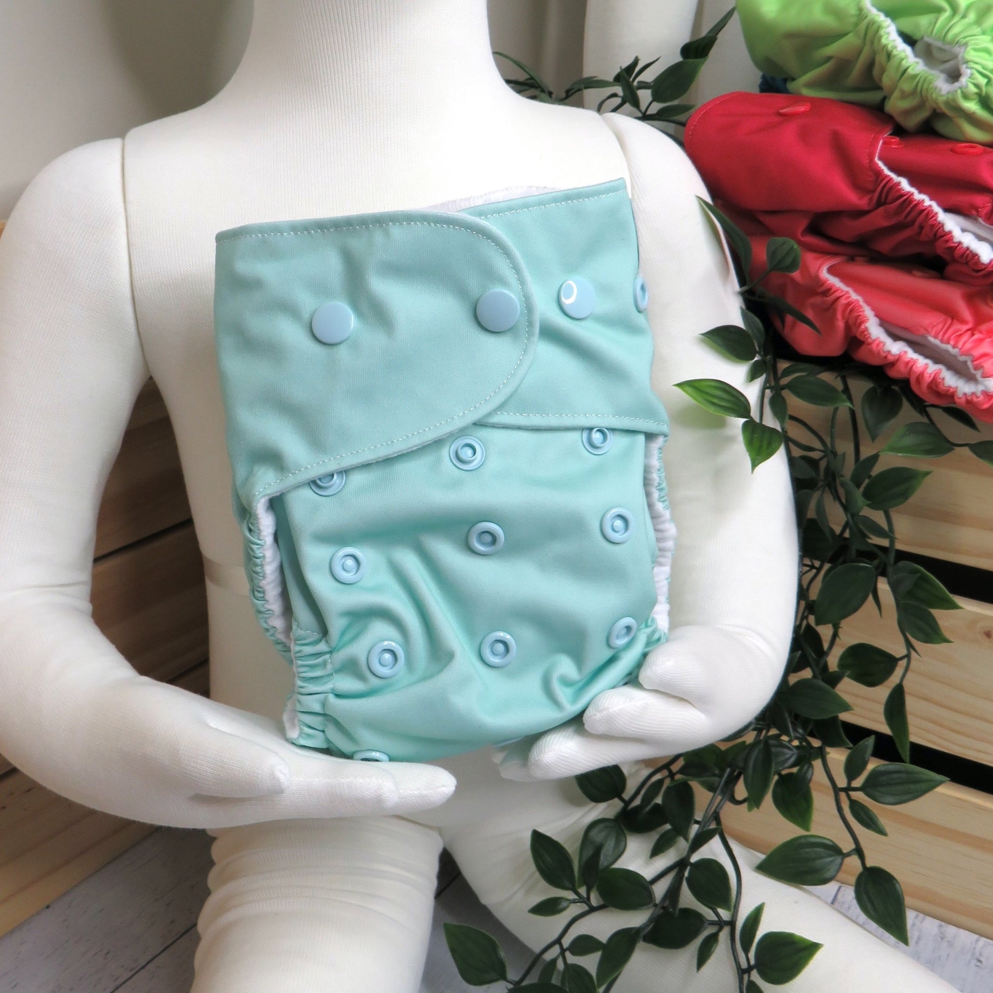 Each nappy comes with a snap in bamboo insert topped with suede cloth and a long bamboo snake insert that can be folded for where the absorbency is needed.