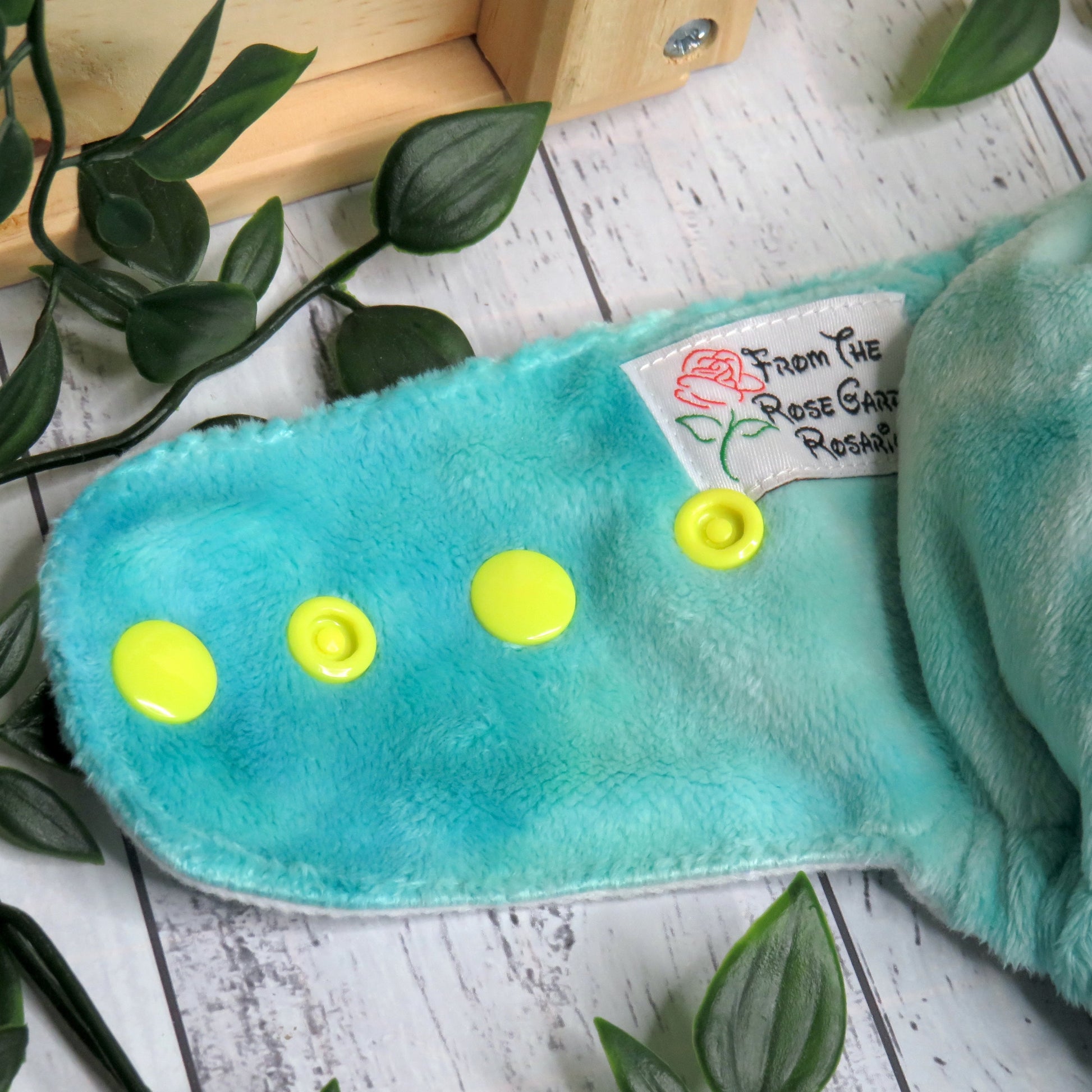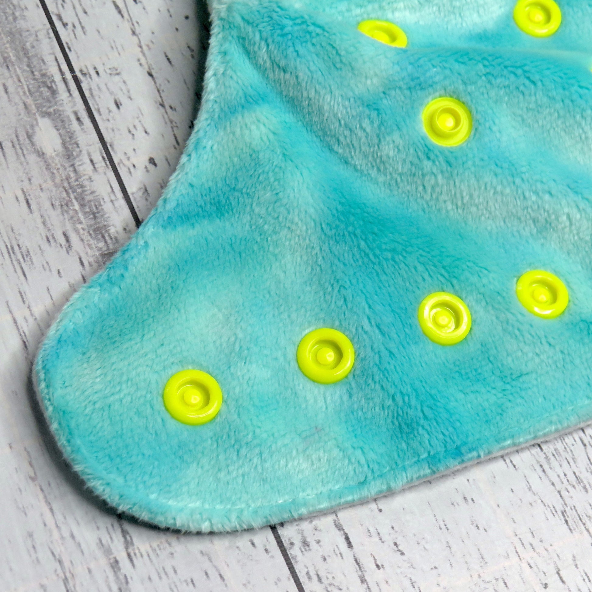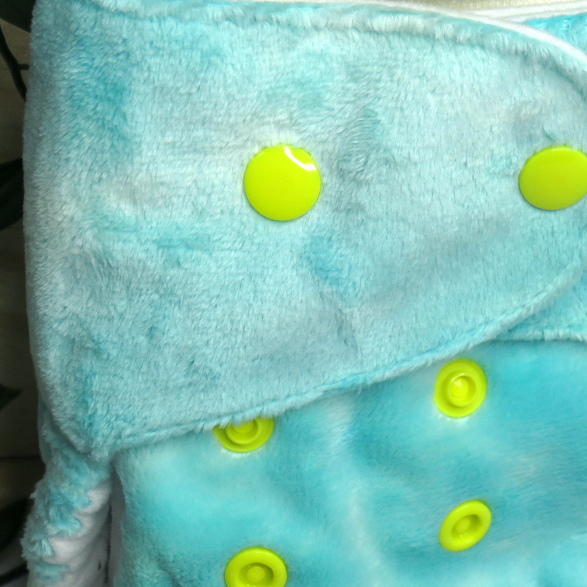 Each nappy comes with a snap in bamboo insert topped with suede cloth and a long bamboo snake insert that can be folded for where the absorbency is needed.