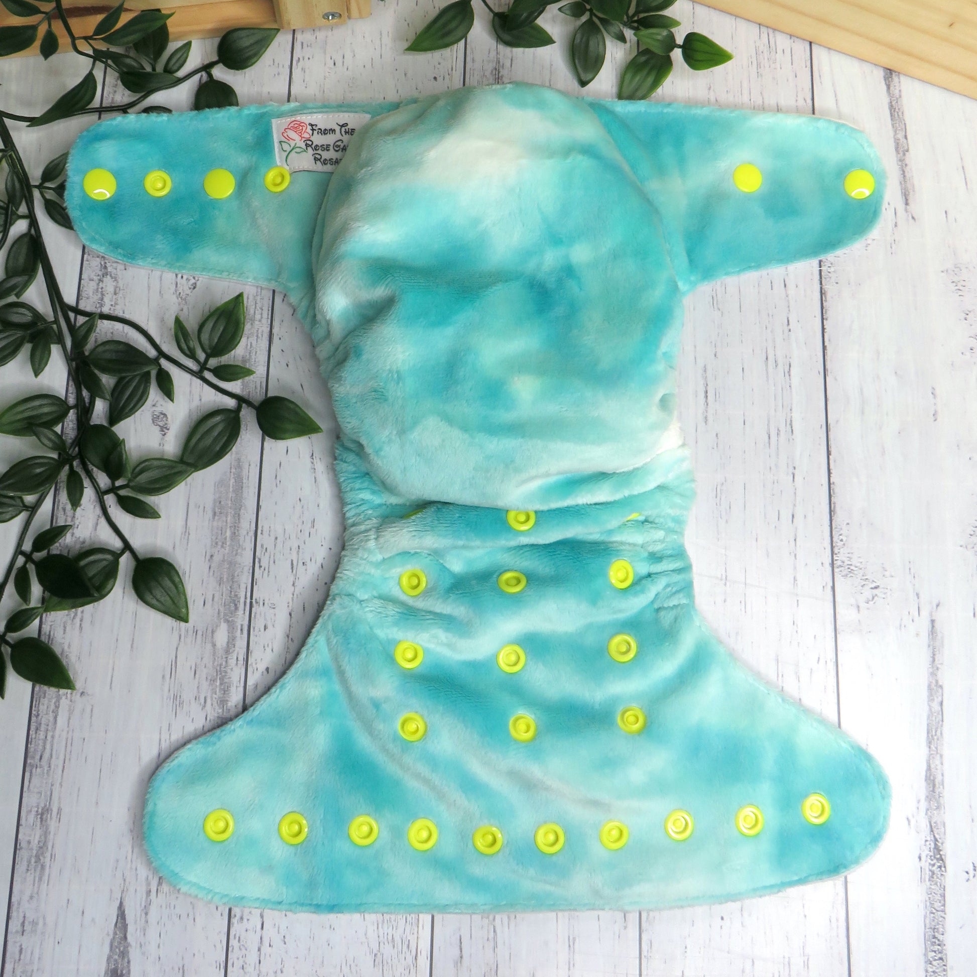 Our Rosarium nappy is a OSFM front snapping nappy that fits from approx 3-17kgs, which on average is from birth right up till toilet training. As with anything the fit may vary depending on your little ones shape.
