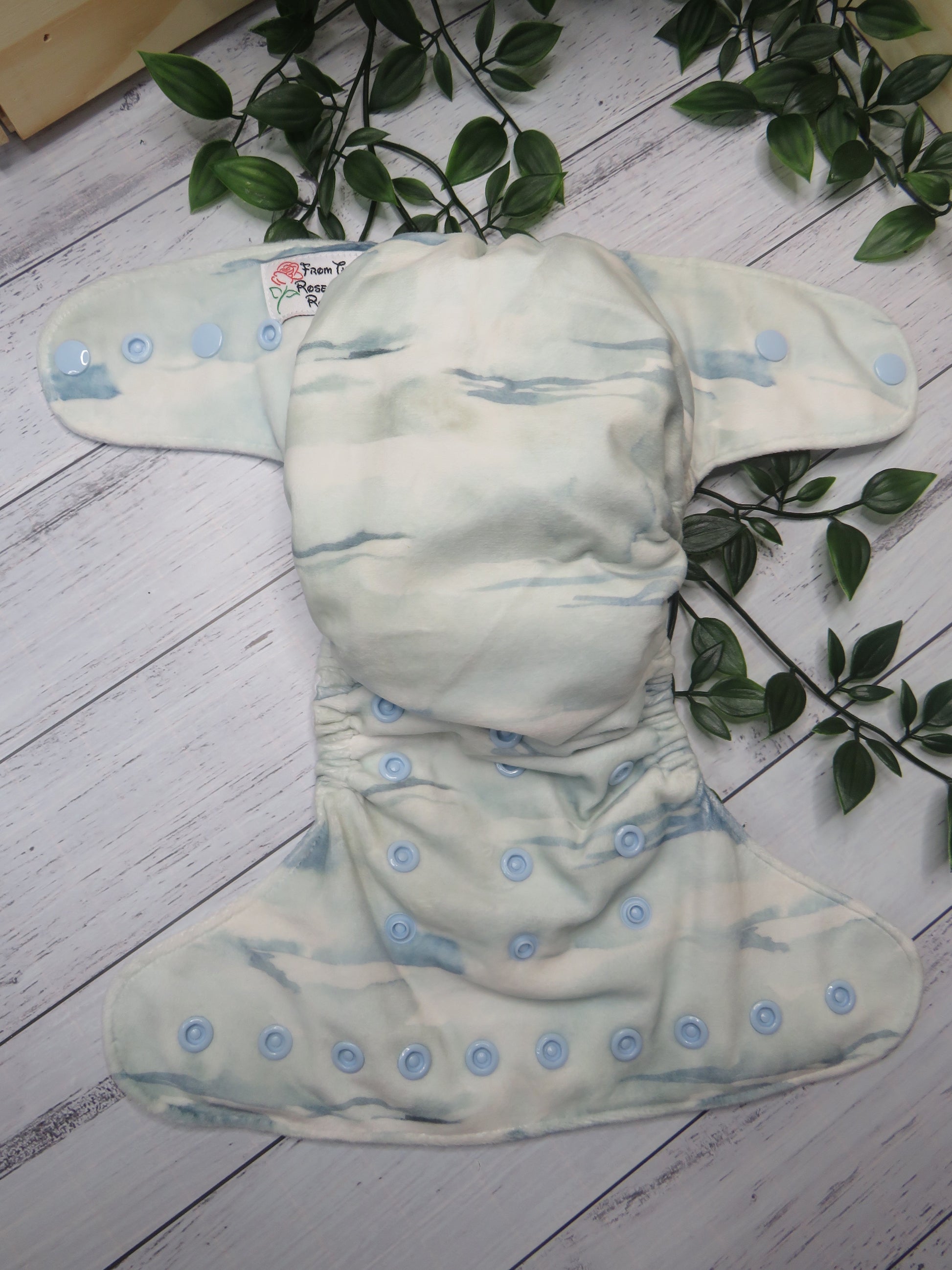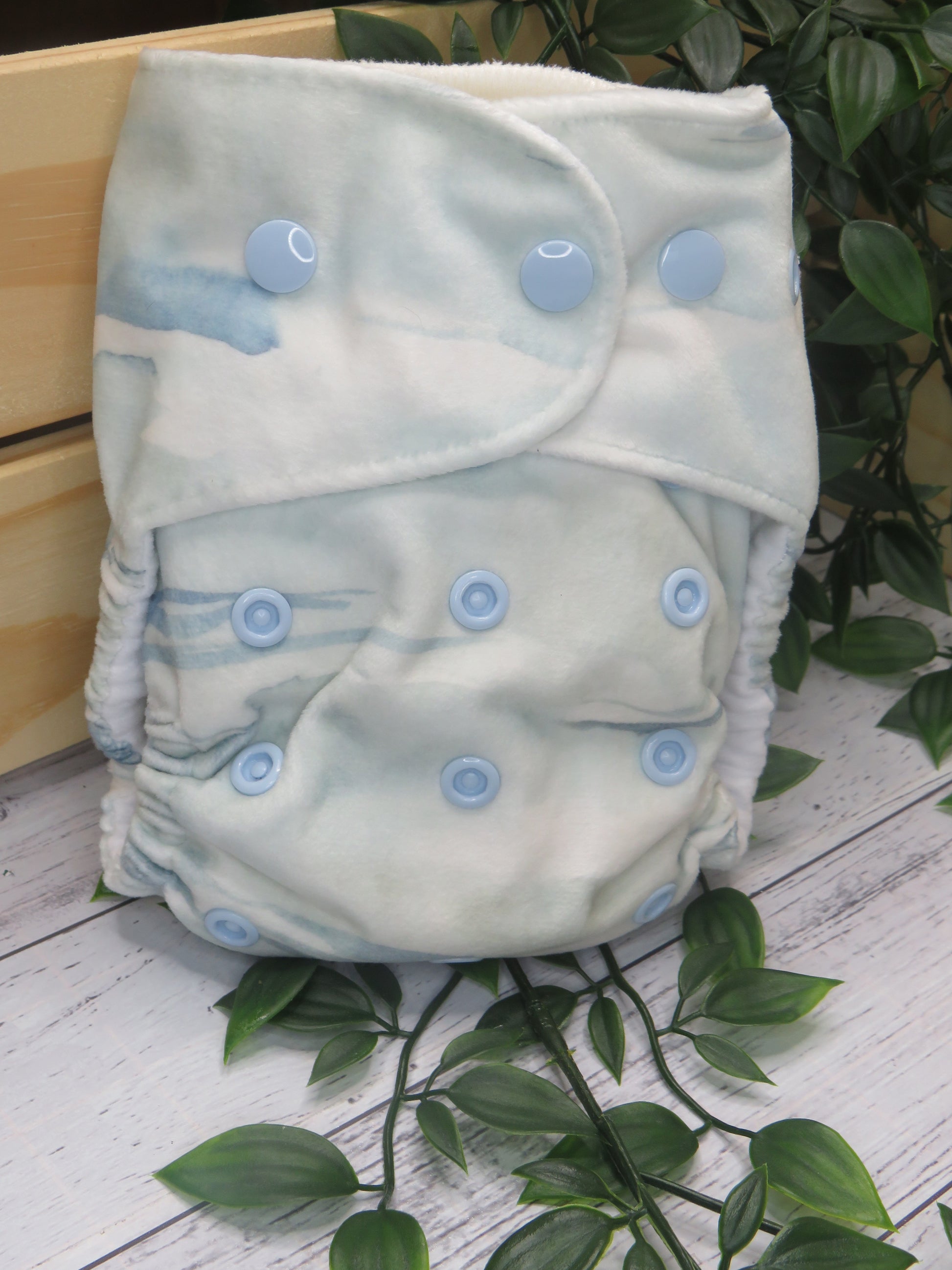 Our Rosarium nappy is a OSFM front snapping nappy that fits from approx 3-17kgs, which on average is from birth right up till toilet training. As with anything the fit may vary depending on your little ones shape.