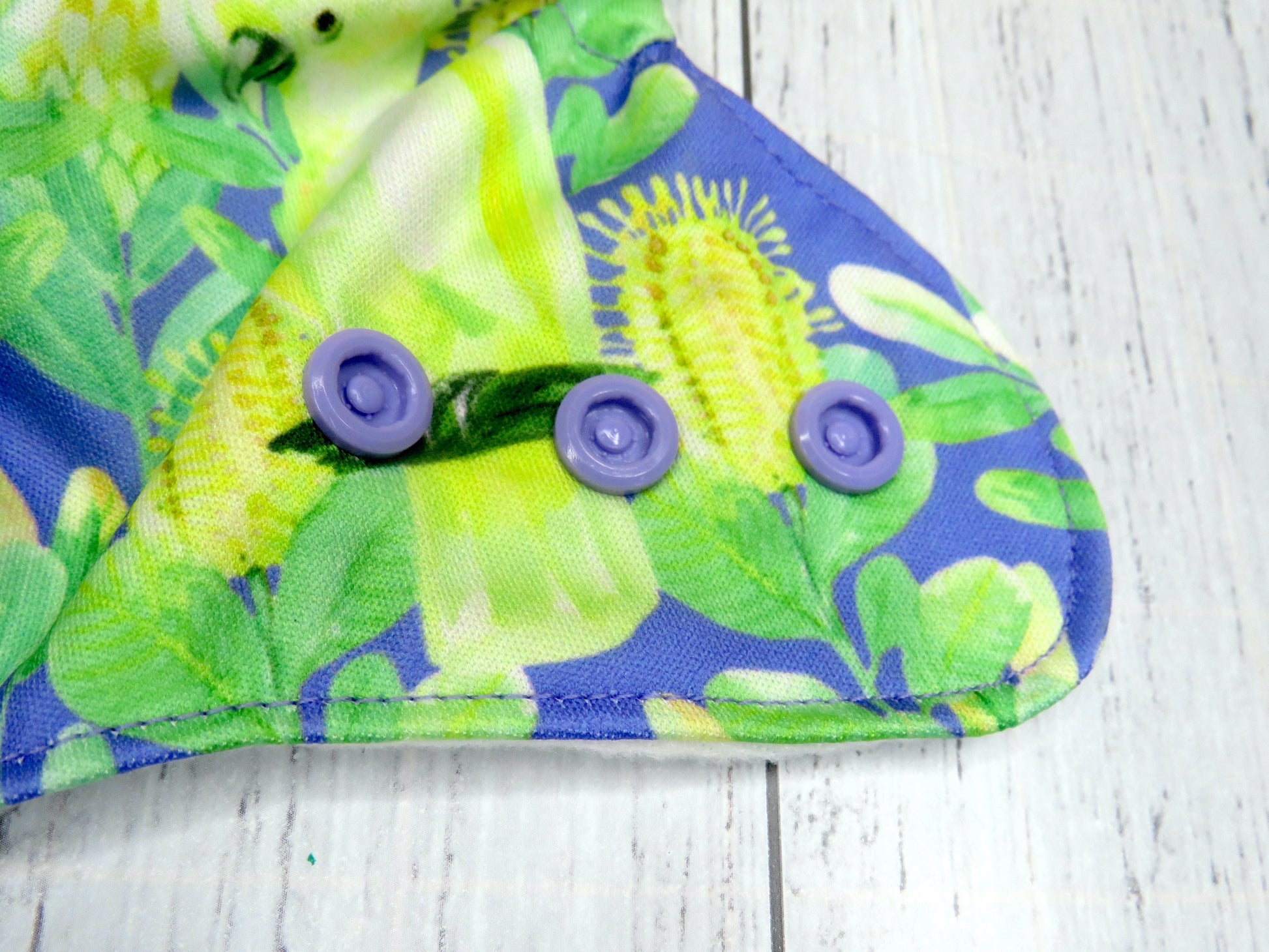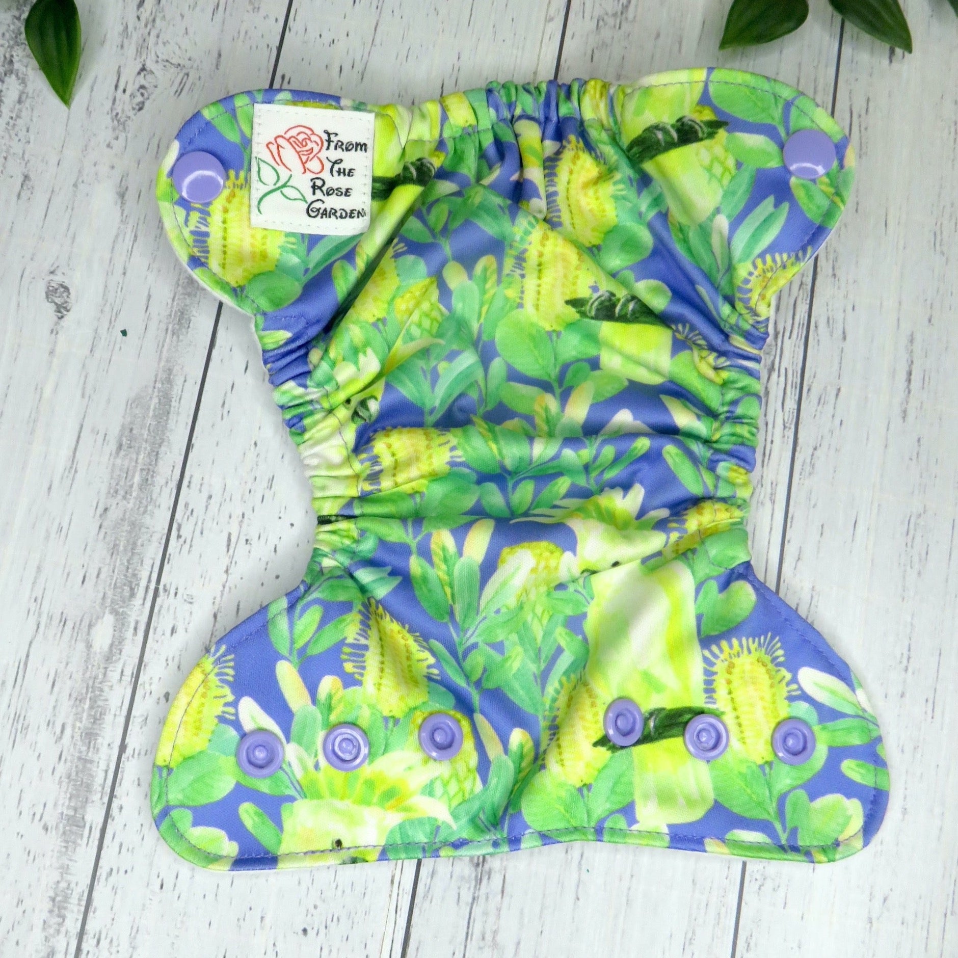 The outer layer of this nappy is PUL with a suede cloth inner, the insert is a fold over snake style insert composed of bamboo and topped with suede cloth to keep bub feeling nice and dry.