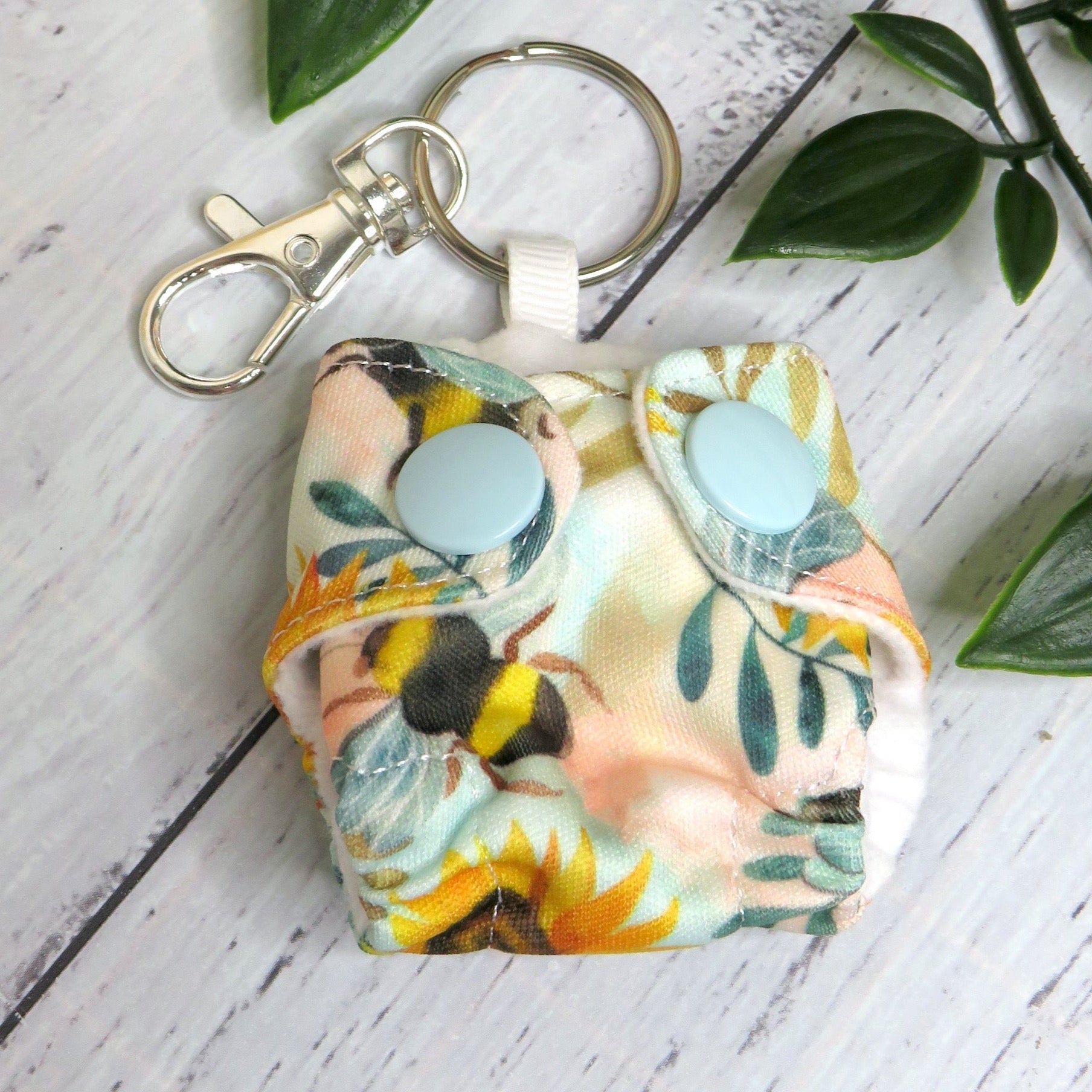 These teeny tiny key chain nappies are complete with elastics and working snaps, they even fit a barbie doll!
