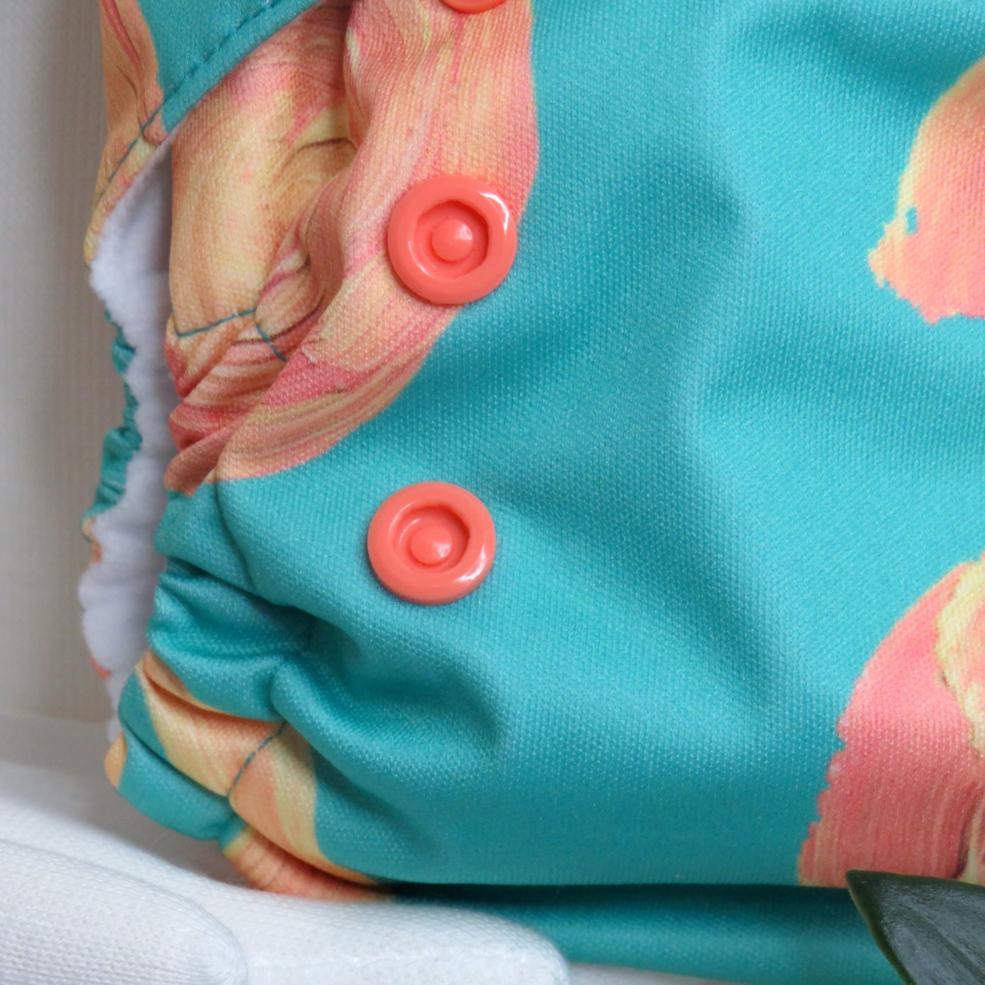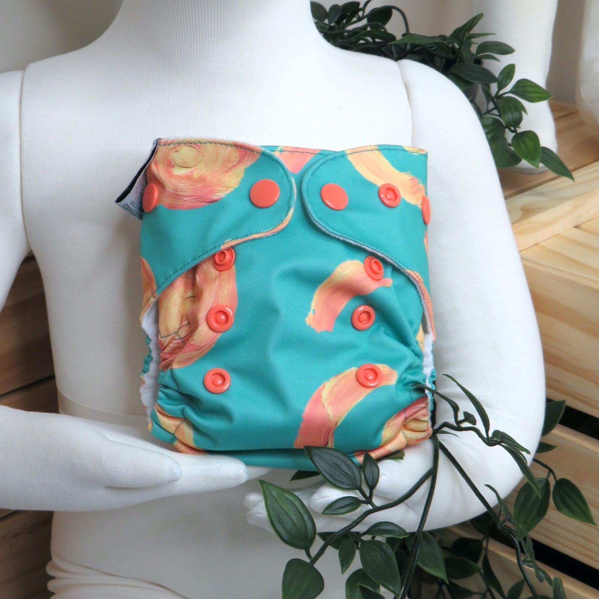 Our front snapping Newborn modern cloth nappy fits from approx 2.5-7kgs, depending on your little ones build.