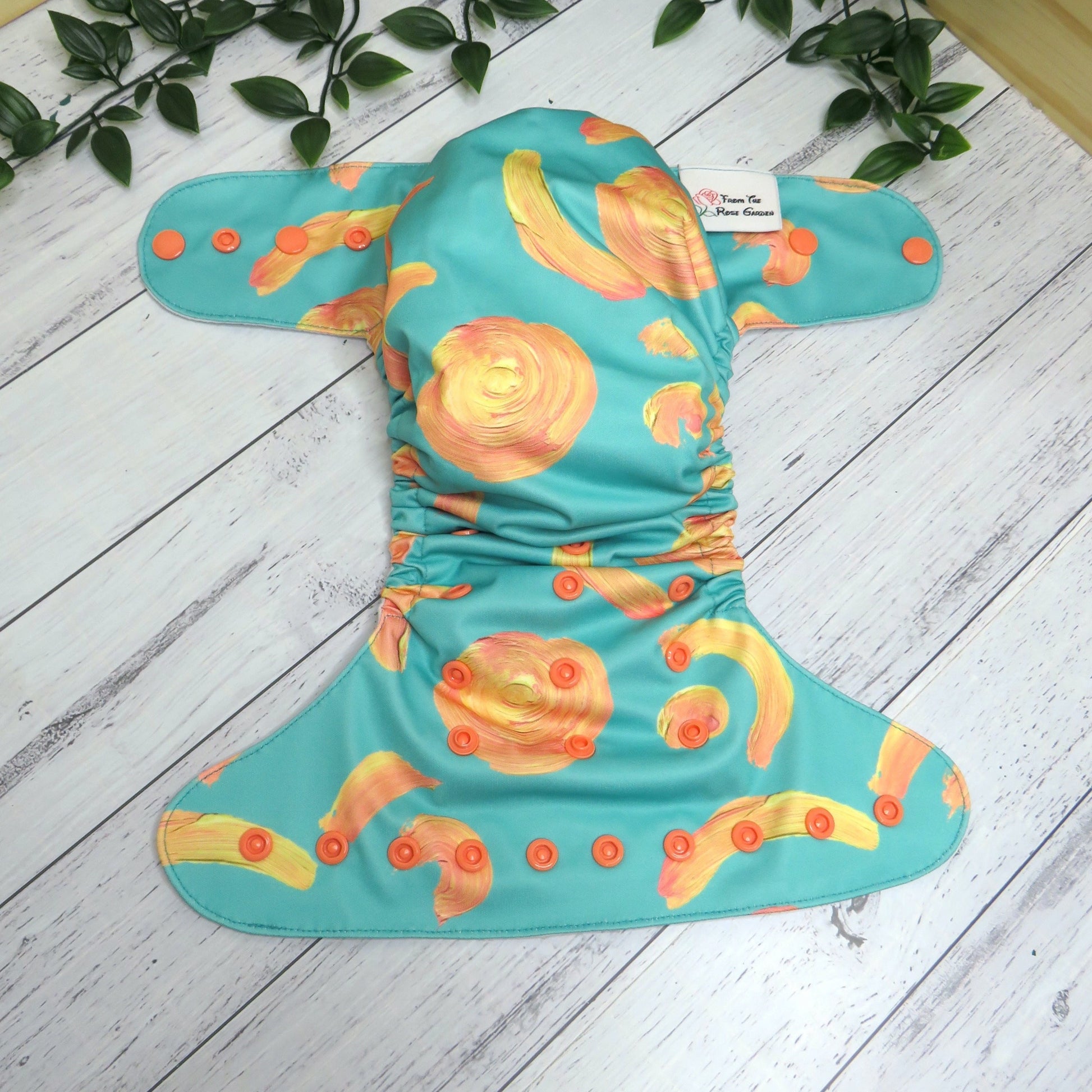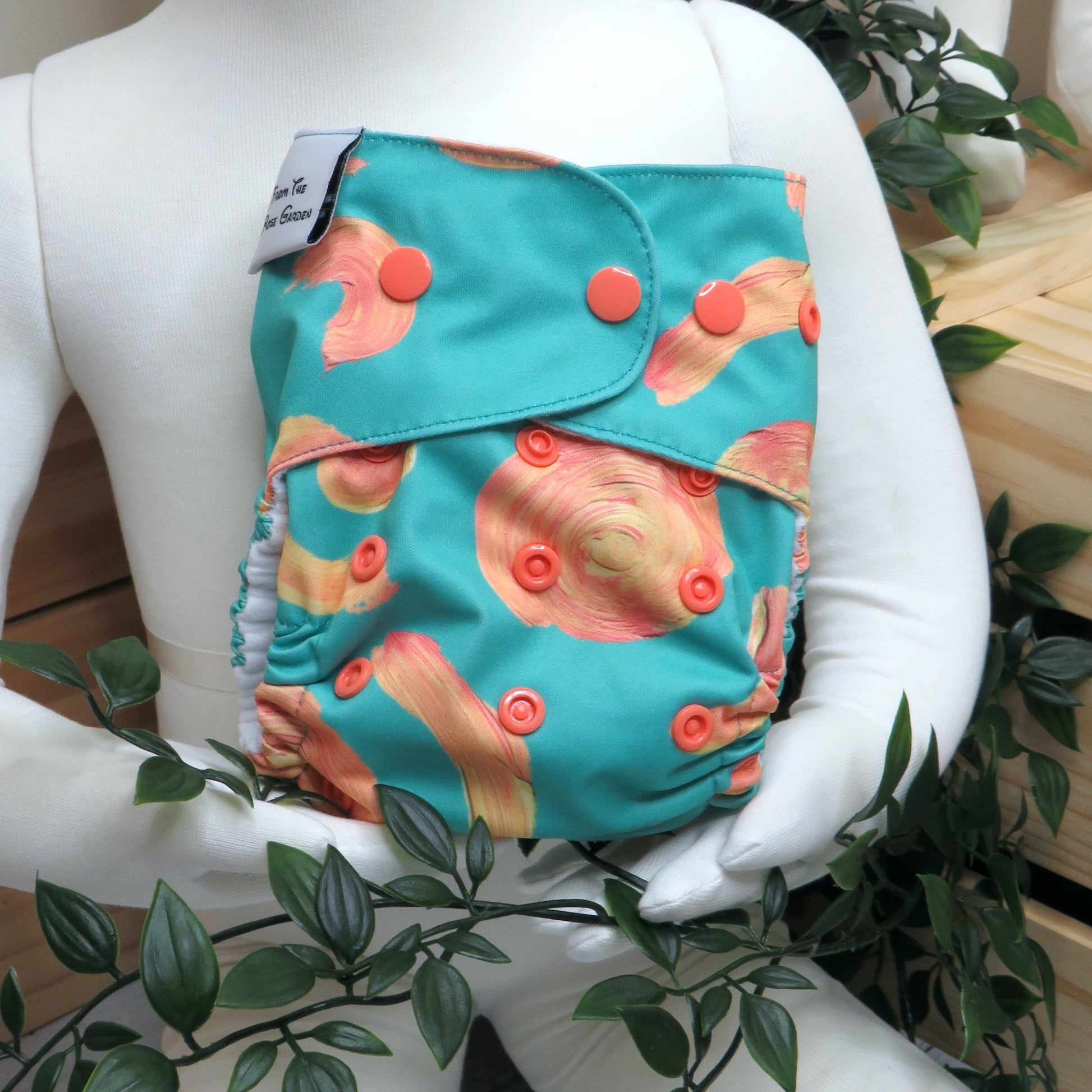 Our Rosarium nappy is a OSFM front snapping nappy that fits from approx 3-17kgs, which on average is from birth right up till toilet training. As with anything the fit may vary depending on your little ones shape.
