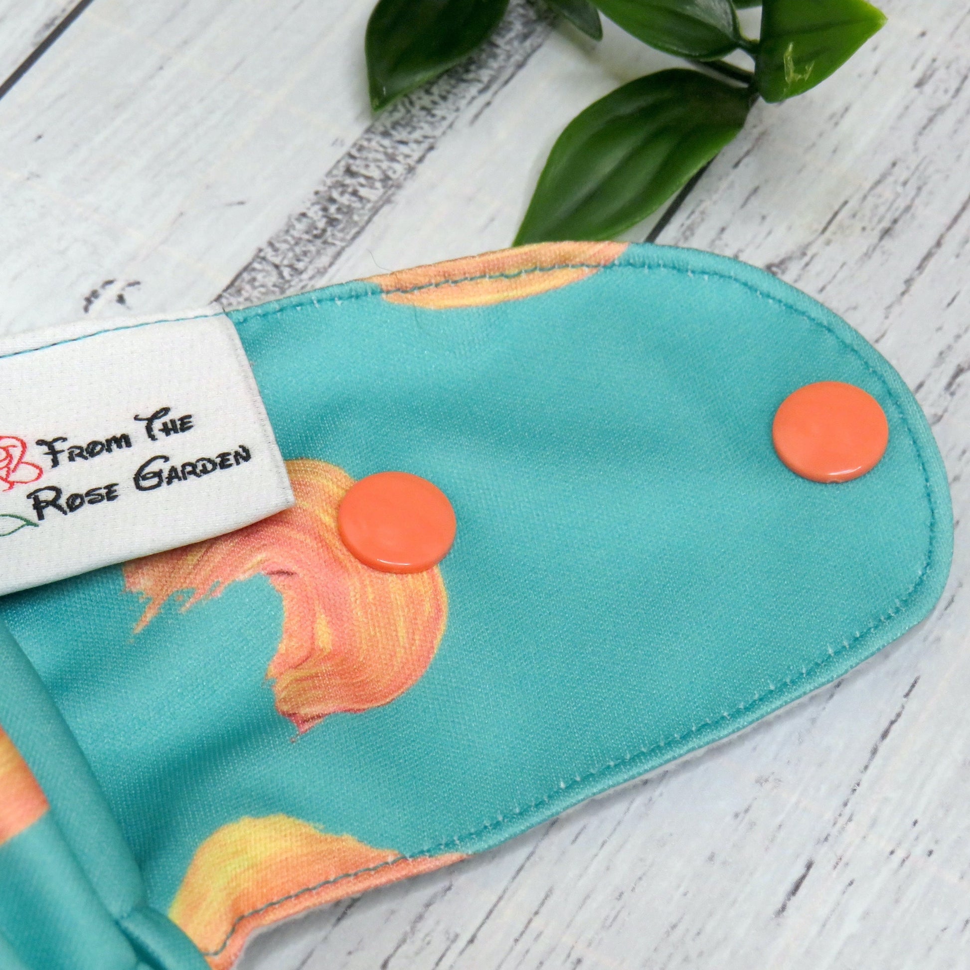 Each nappy comes with a snap in bamboo insert topped with suede cloth and a long bamboo snake insert that can be folded for where the absorbency is needed.