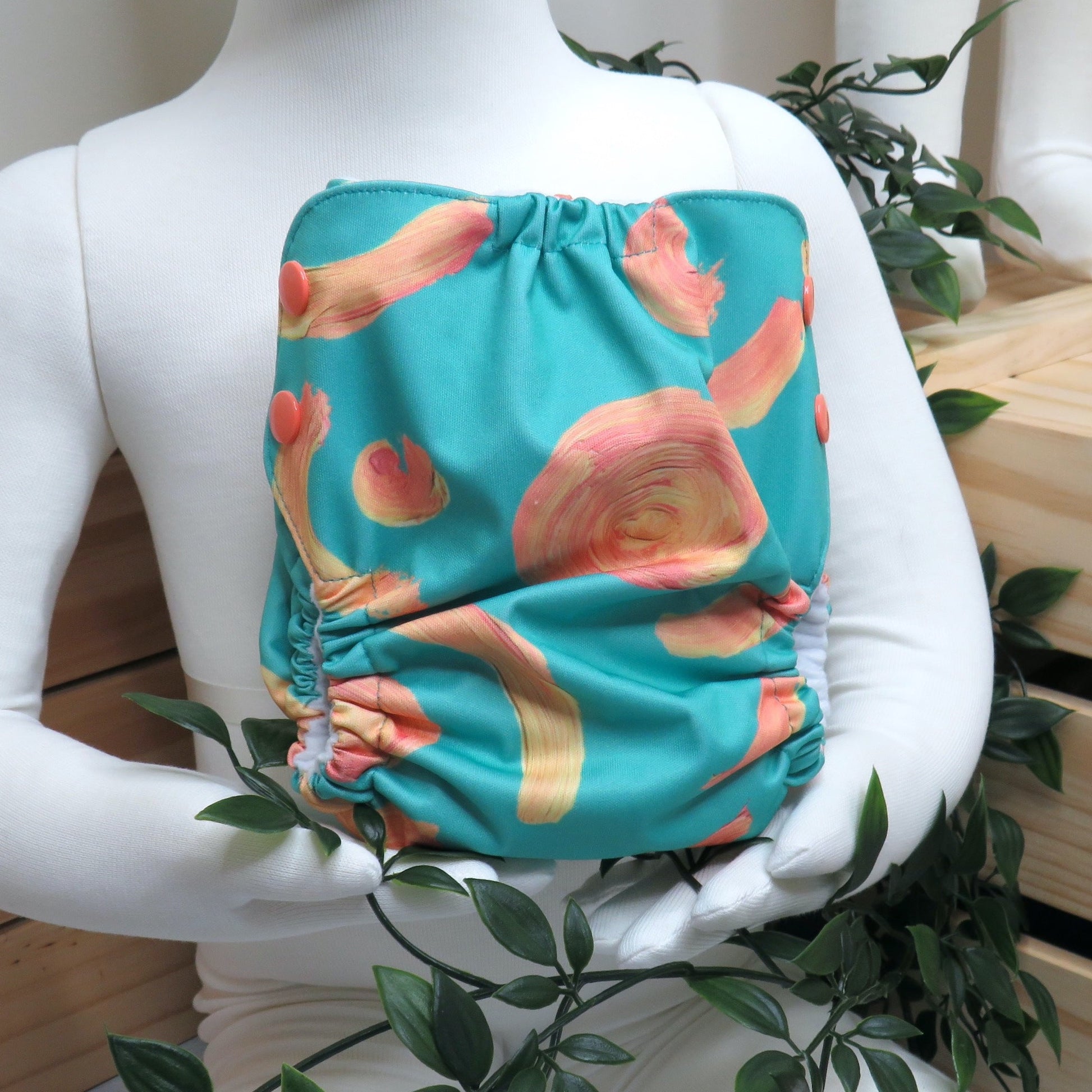 Each nappy comes with a bamboo snap in insert topped with suede cloth and a long bamboo snake insert.