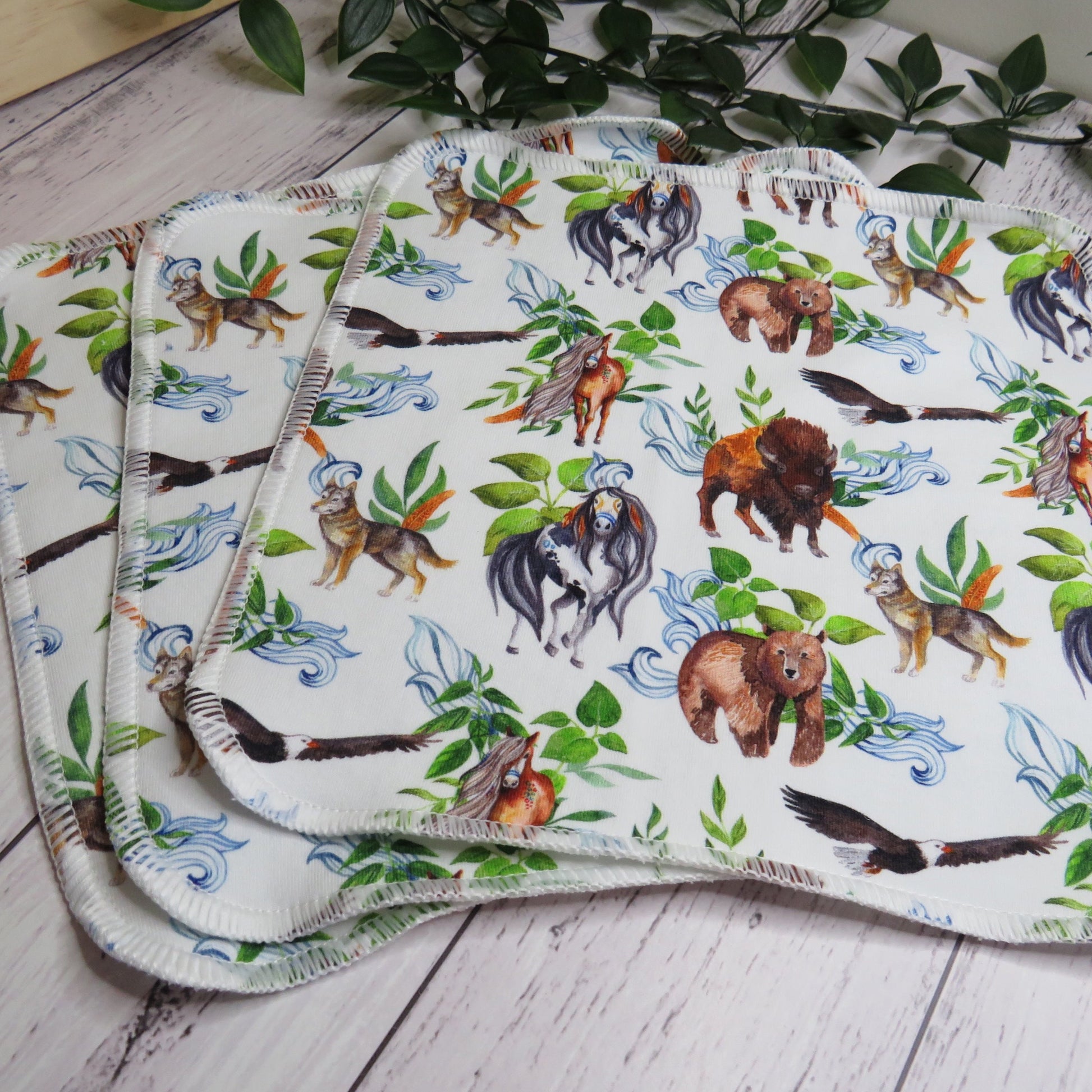 These cloth wipes are made with cotton lycra and backed with a low pile bamboo terry.