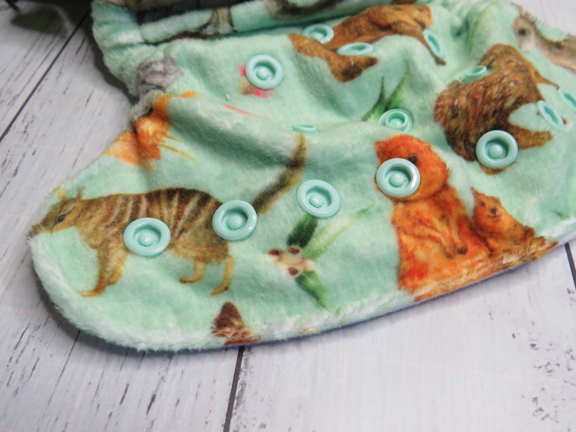 Each nappy is made with a minky outer and suede cloth inner.
